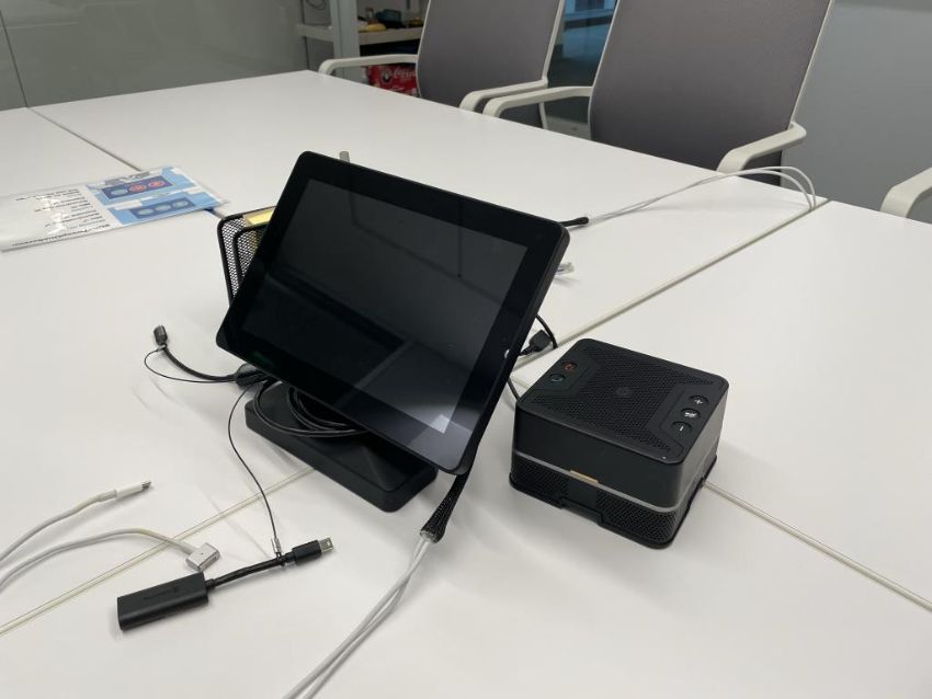 Video Conference System with (1) Sharp 70" LC-70EQ10U TV; (1) Logitech V-U0035 Camera; (1) Mimo UM-1080CP-B Vue Capacitive Touch Display; (1) Google Hangout Meets Speakermic. HIT# 2366004. Loc: Bldg2-8 / B8-878. Asset Located In 1355 Market St. San Francisco, CA 94103.