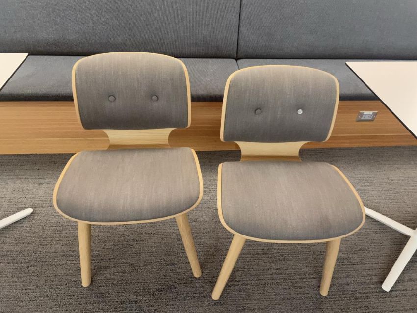 (4qty) Moooi Chairs, Design by Marcel Wanders "Buttons Need Replacing* (Chair Dims = 19"W x 17"D x 30.25"H) also includes (5qty) Andreu Café Tables Dims = 31.5"x31.5"x28.25"H. HIT# 2366040. Loc: Bldg2-10 / 1056. Asset Located In 1355 Market St. San Francisco, CA 94103.