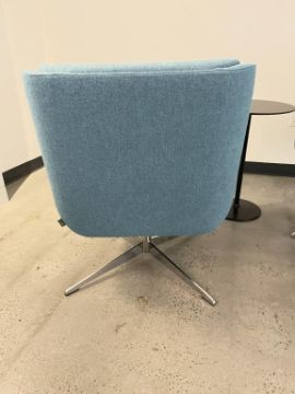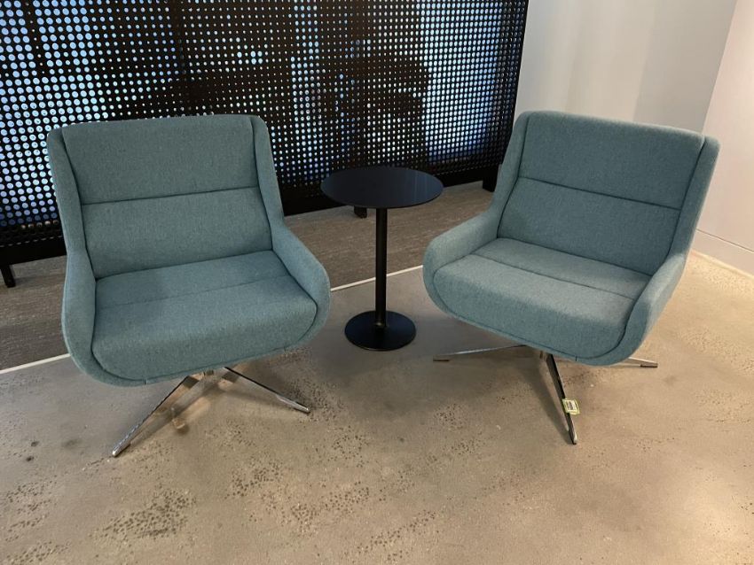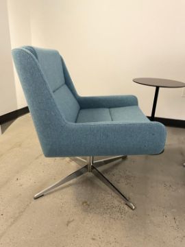 (2) Naughtone Hush Low Lounge Chair, Sapphire with Andreu World Table. Dims = 27.5"W x 27"D x 34"H. HIT# 2365909. Loc: Bldg2-4 / Brkrm. Asset Located In 1355 Market St. San Francisco, CA 94103.
