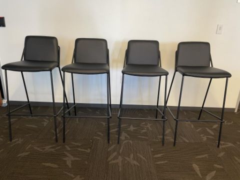 (4) M.A.D Sling Bar Stool, Black Frame, Black PU/Eco-Leather Seat. Overall Dims = 20" W x 22" D x 41" H. HIT# 2319762. Loc: 6th Flr Office. Asset Located In 1355 Market St., San Francisco, CA 94103.