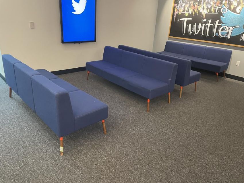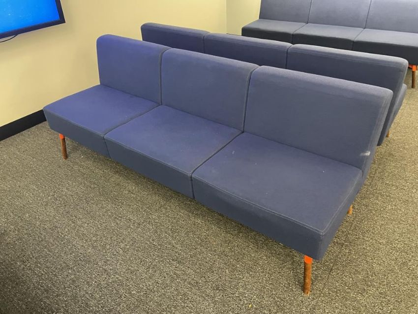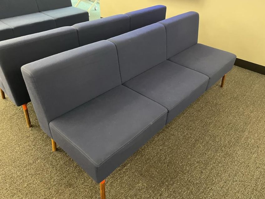 (4) Hightower Tombolo Sofas, Blue Fabric. Dims = 78"L x 26"D x 30"H. HIT# 2366016. Loc: Bldg2-9 / Café. Asset Located In 1355 Market St. San Francisco, CA 94103.