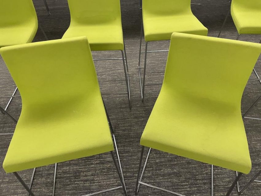 (12) Andreu World Lineal Comfort Counter Stools, Lime Green Fabric. Dims = 19.5"W x 20.25"D x 36"H / 25.5" Seat H. HIT# 2366049. Loc: Bldg2-10 / 1066. Asset Located In 1355 Market St. San Francisco, CA 94103.