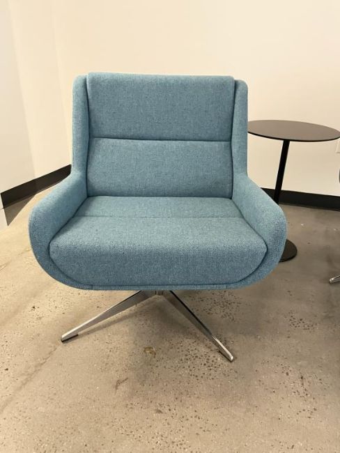 (2) Naughtone Hush Low Lounge Chair, Sapphire with Andreu World Table. Dims = 27.5"W x 27"D x 34"H. HIT# 2365907. Loc: Bldg2-4 / Brkrm. Asset Located In 1355 Market St. San Francisco, CA 94103.