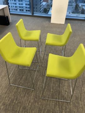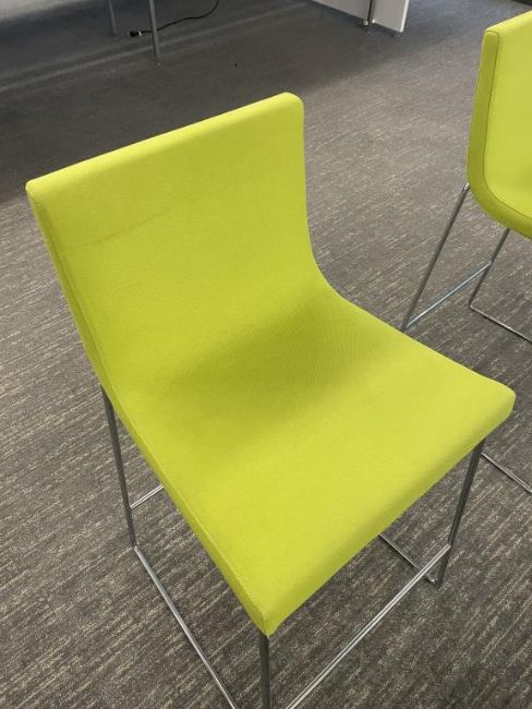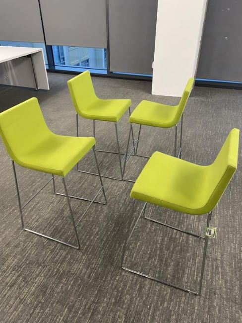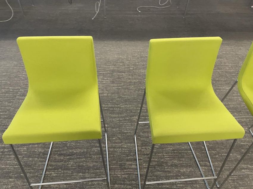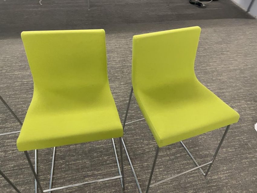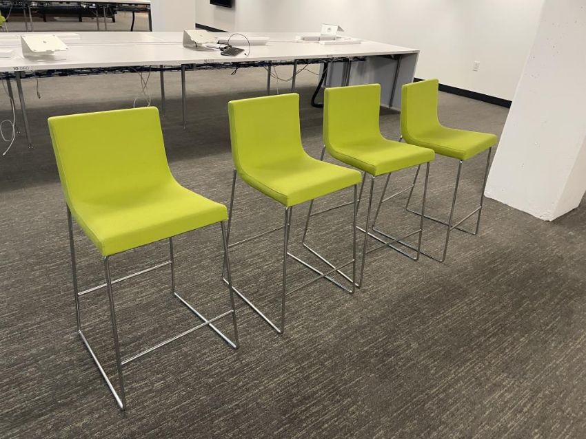 (12) Andreu World Lineal Comfort Counter Stools, Lime Green Fabric. Dims = 19.5"W x 20.25"D x 36"H / 25.5" Seat H. HIT# 2366044. Loc: Bldg2-10 / 1041. Asset Located In 1355 Market St. San Francisco, CA 94103.