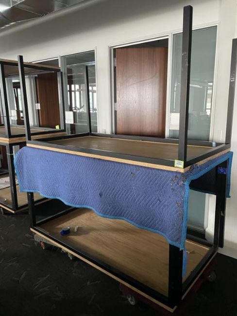 (3) OHIO Design Rectangle Table, Solid Wood Top, Hand Welded Steel Frame. Dims = 72"L x 36"D x 36"H. HIT# 2365838. Loc: 6th flr Office. Asset Located In 1355 Market St. San Francisco, CA 94103.