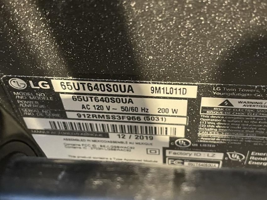 LG 65" LG65ut640S0UA UHD Commercial Signage TV with Wall Bracket. HIT# 2365821. Loc: 6301. Asset Located In 1355 Market St. San Francisco, CA 94103.