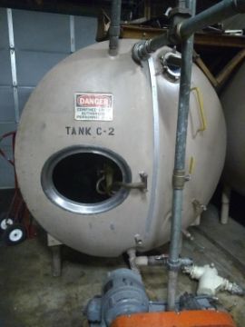 Approx. 6' Dia x 7'6" Long Horizontal Material Storage Tank With Stand, Tank C2. HIT# 2390918. Boiler Tank Room. Asset Located at 1112 Walnut Street, Roselle, NJ 07203.