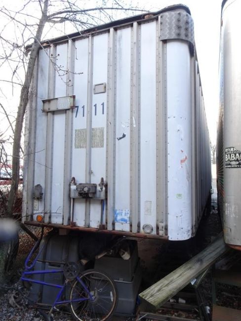 Strick 45' x 96" 2-Axle Storage Trailer Mfd 1971 for Storage Only Trailer Appears Dry Items Currently Stored In Trailer. HIT# 2390960. Rear Of Building. Asset Located at 1112 Walnut Street, Roselle, NJ 07203.