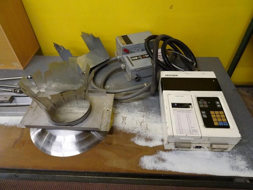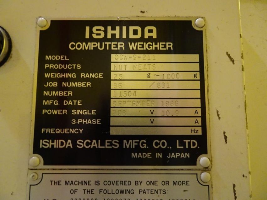 Ishida Heat and Control CCW-S-211 25-1000G Multihead Weigh Scale, 208v, 3PH, 60Hz, Mfd 9-86, With Associated Sides. SN# 11504. HIT# 2390802. Packaging. Asset Located at 1112 Walnut Street, Roselle, NJ 07203.