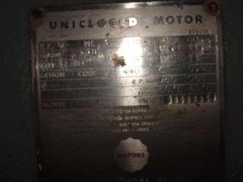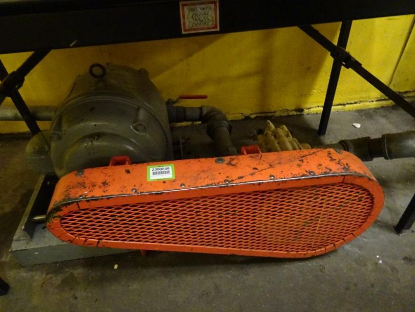 US Electrical Motors Unenclosed 3hp Electric Motor, 254U Frame, Type H, 220/440V, 3ph, 50/60Hz, with Belt Driven Syrup Pump. HIT# 2390849. Forklift/Air Bay. Asset Located at 1112 Walnut Street, Roselle, NJ 07203.