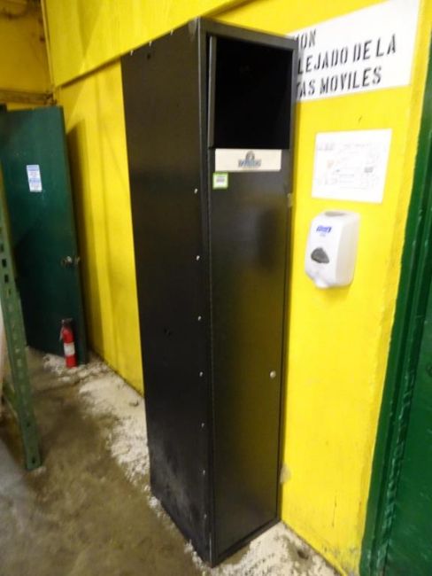 Lot: (4) Dirty Uniform Return Lockers, (1) Single Locker Sectional, (1) 3- Locker Sectional. HIT# 2390842. Packaging. Asset Located at 1112 Walnut Street, Roselle, NJ 07203.