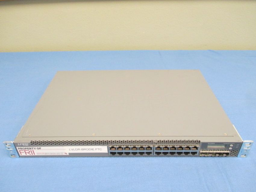 Juniper Networks EX3300-24T 24-Port 10/100/1000BASE-T Ethernet Switch, compact scalable for campuses and data centers. S/N: GD0216340081. HIT# 2317337. Loc: Back Office, East. Asset Located at 3350 Eastbrook Drive, Fort Collins, CO 80525. *Payment by Wire Transfer is Due 48 Hours After Close of Sale.*