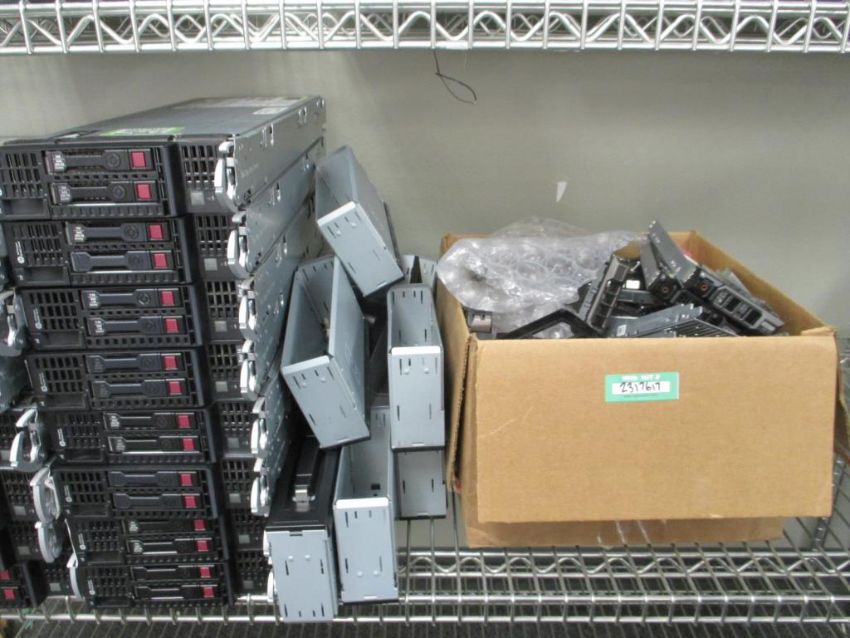 Hewlett Packard ProLiant 460 Series Lot: (8) Gen8 Server Blades with Hard Drives. Consisting of: (2) 1Tb, (8) 300Gb, (6) 146Gb; Box of Assorted Carriers. HIT# 2317617. Loc: Office Rack 1. Asset Located at 3350 Eastbrook Drive, Fort Collins, CO 80525. *Payment by Wire Transfer is Due 48 Hours After Close of Sale.*