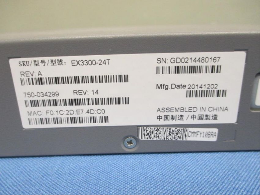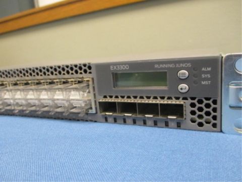 Juniper Networks EX3300-24T 24-Port 10/100/1000BASE-T Ethernet Switch, compact scalable for campuses and data centers. S/N: GD0214480167. HIT# 2317336. Loc: Back Office, East. Asset Located at 3350 Eastbrook Drive, Fort Collins, CO 80525. *Payment by Wire Transfer is Due 48 Hours After Close of Sale.*