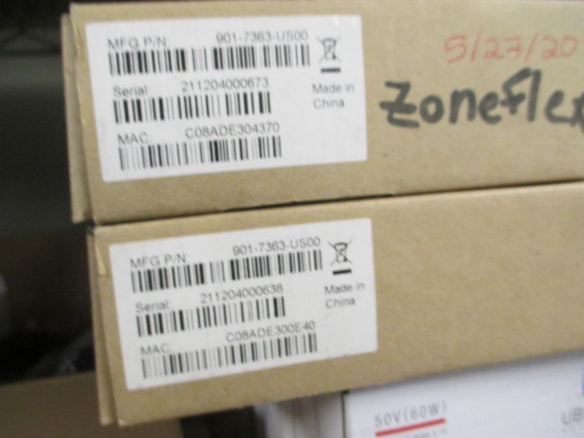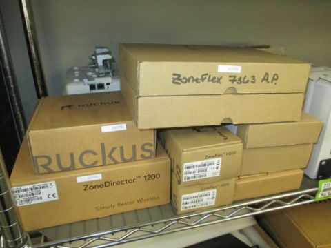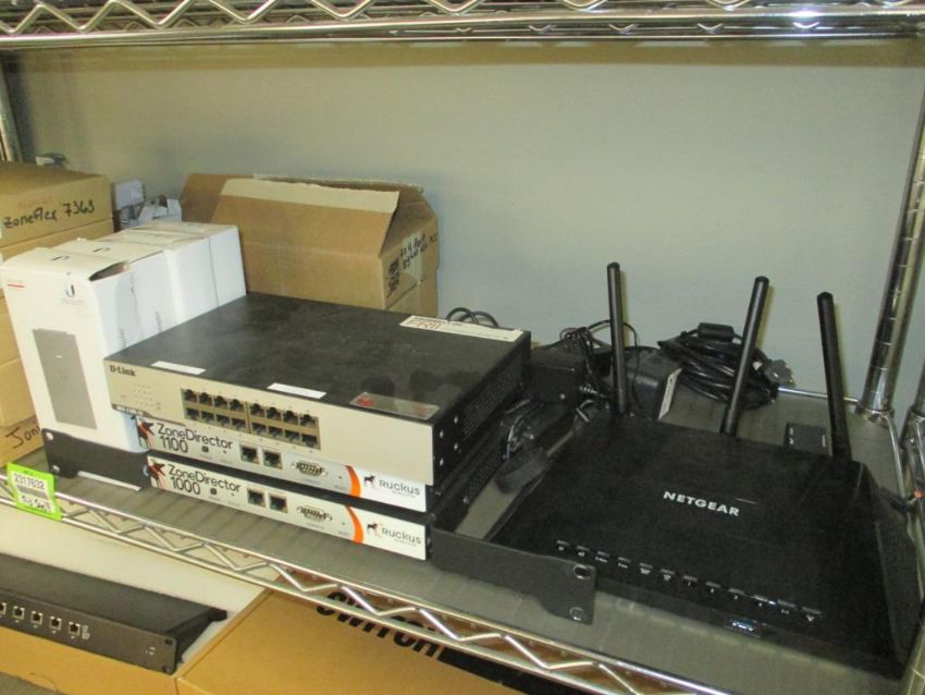 Ruckus Lot: (11) Wireless Access Points. Consisting of: (2) ZoneFlex 7372; (3) ZoneFlex 7363; (1) ZoneFlex R600 Series; (2) ZoneFlex H500 Wall Switch. Wireless Controllers: (1) ZoneDirector 1200; (1) ZoneDirector 1100; (1) ZoneDirector 1000. Also Includes: (1) D-Link DGS-1100-16 16-Port Gigabit Smart Managed Switch; (1) Netgear Nighthawk RS700v3 AC1750 Smart WiFi Router; (1) Ubiquiti UISP-R-Pro Multi-WAN 10GbE Router with 50V 60W Carrier PoE Adapters. HIT# 2317632. Loc: Office Rack 2. Asset Located at 3350 Eastbrook Drive, Fort Collins, CO 80525. *Payment by Wire Transfer is Due 48 Hours After Close of Sale.*