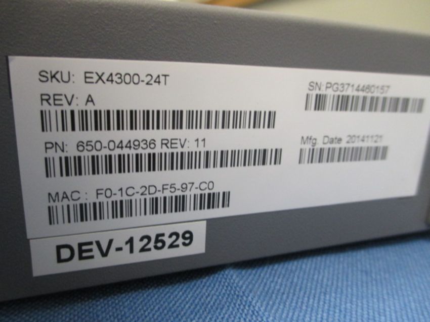 Juniper Networks EX4300-24T 24-Port 10/100/1000BASE-T Gigabit Ethernet Switch with 611-044925 4-Port 1GbE/10GbE SFP+ Uplink Module and Dual DC Power Supplies; fixed-configuration platform for a variety of high-performance campus and data center access. S/N: PG3714460157. HIT# 2317346. Loc: Back Office, East. Asset Located at 3350 Eastbrook Drive, Fort Collins, CO 80525. *Payment by Wire Transfer is Due 48 Hours After Close of Sale.*
