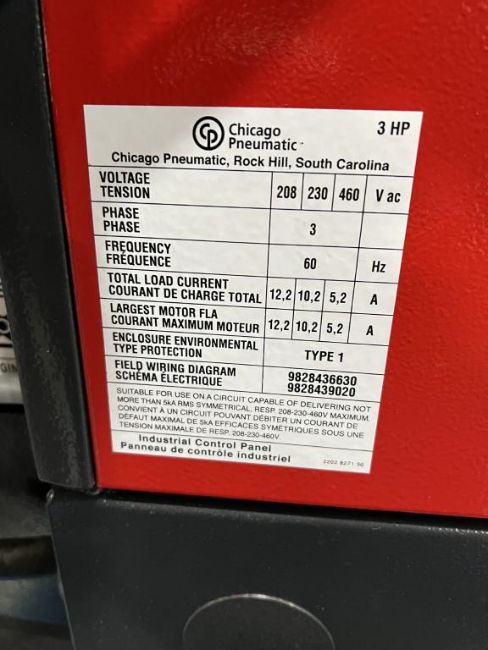Chicago Pneumatic QRS 3.0 Rotary Screw Air Compressor. S/n ITJ018870. HIT# 2402231. Row 20 H. Asset Located at 26545 Danti Court, Hayward, CA 94545. *Payment by Wire Transfer is Due 48 Hours After Close of Sale.*