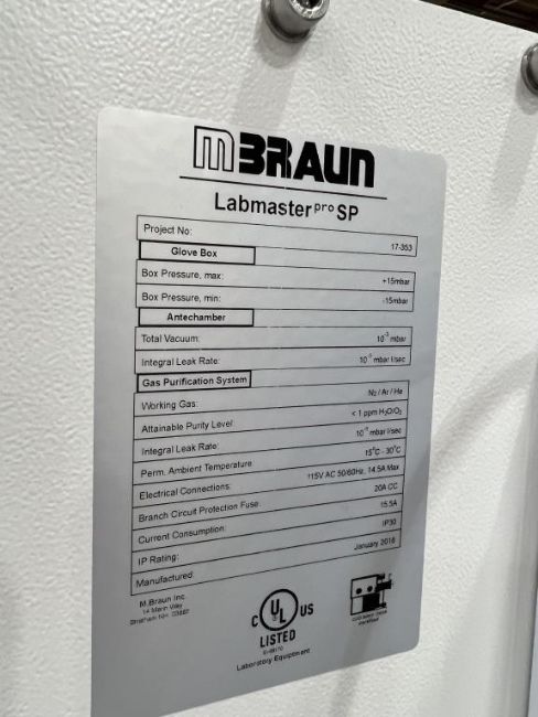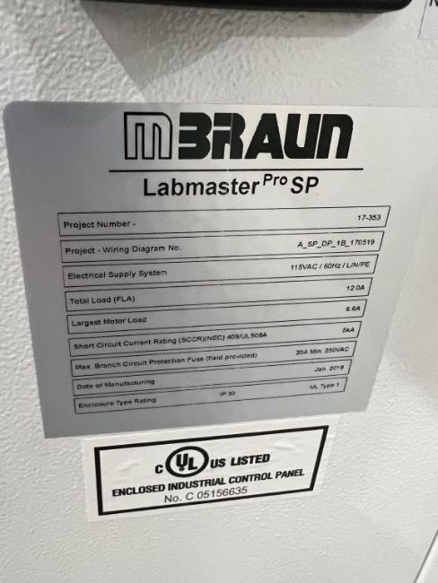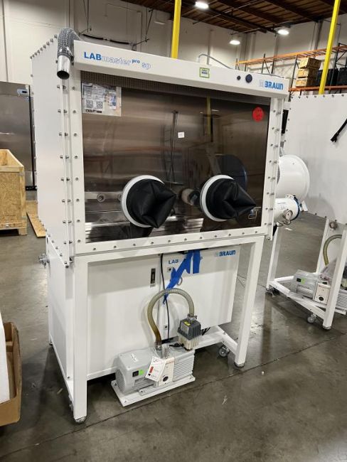 Mbraun Labmaster Pro SP Glove Box Workstation with Edwards Vacuum Pump. S/n# 17-353. Hit# 2364641. Loc: Row 9E. Asset Located at 26545 Danti Court , Hayward , CA 94545. *Payment by Wire Transfer is Due 48 Hours After Close of Sale.*
