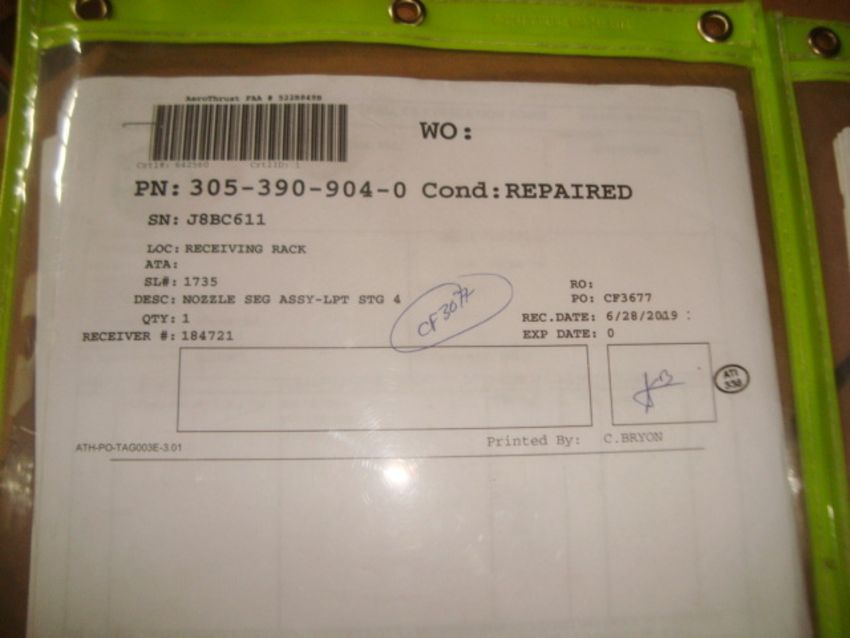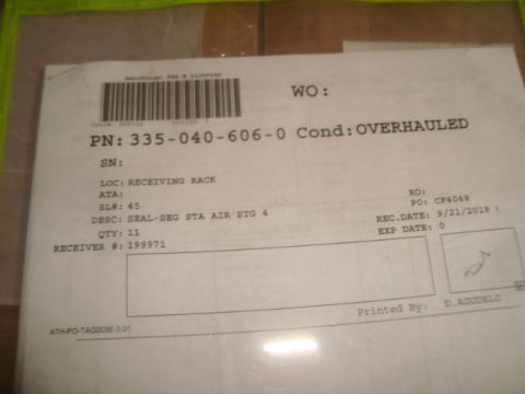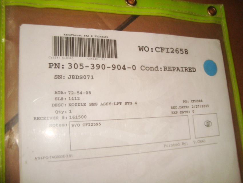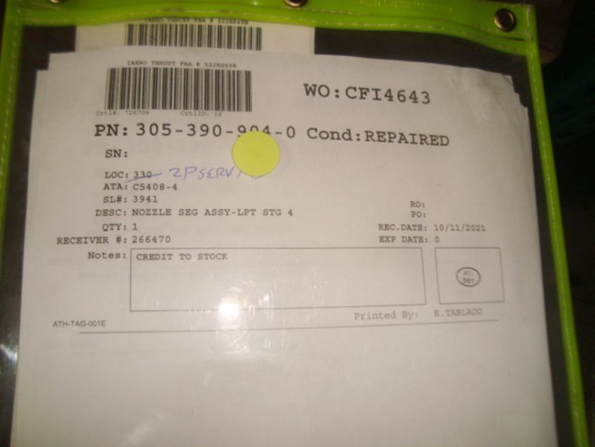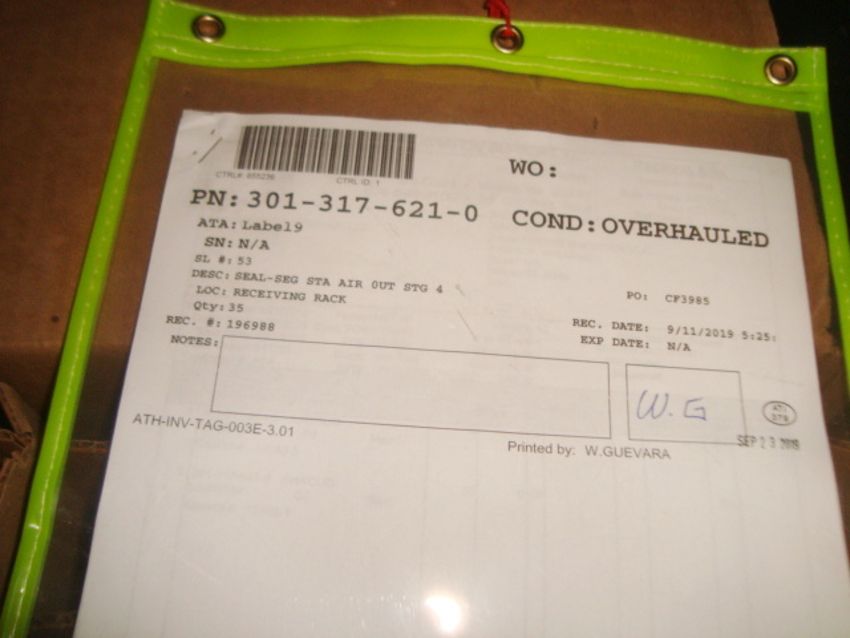 CFM56-3 Jet Engine Parts Inventory To Include: SEAL-SEG STA AIR OUT STG 4, NOZZLE SEG ASSY-LPT STG 4, & SEAL-SEG STA AIR STG 4. Condition: Overhauled & Repaired. See Inventory Link For More Complete Inventory Listing & Qty Details. HIT# 2373490. Asset Located at 5300 NW 36th St., Miami , FL 33122. Main Bldg. 2nd Fl Parts, Racks:2PSERV14D. *Sale is Subject to Seller Confirmation with Bulk Sale Lot 1229.*