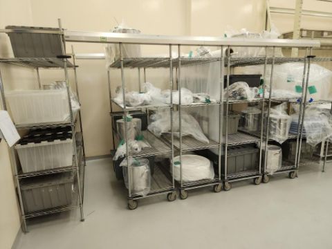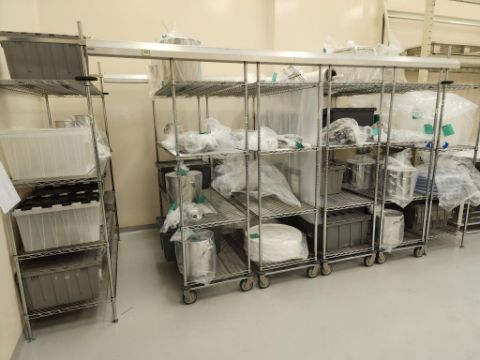 Metro Racking System - Parts Storage, includes (6) Metro racks w/ overhead guide. HIT# 2337594. Loc: 1116. Asset Located at 400 Iroquois Shore Road, Oakville, ON L6H 1M5, Canada.