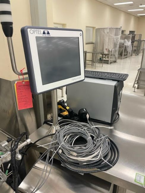 Optel Vision System with handheld barcode scanner and Zebra Label Printer. HIT# 2337168. Solids Packaging Area. Asset Located at 400 Iroquois Shore Road, Oakville, ON L6H 1M5, Canada.