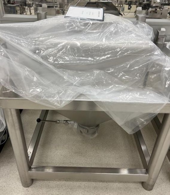 Glatt 500 liter Stainless Steel Bin. HIT# 2337186. Solids Packaging Area. Asset Located at 400 Iroquois Shore Road, Oakville, ON L6H 1M5, Canada.