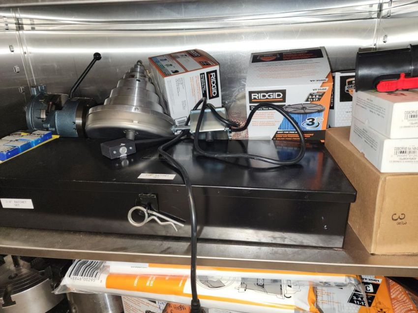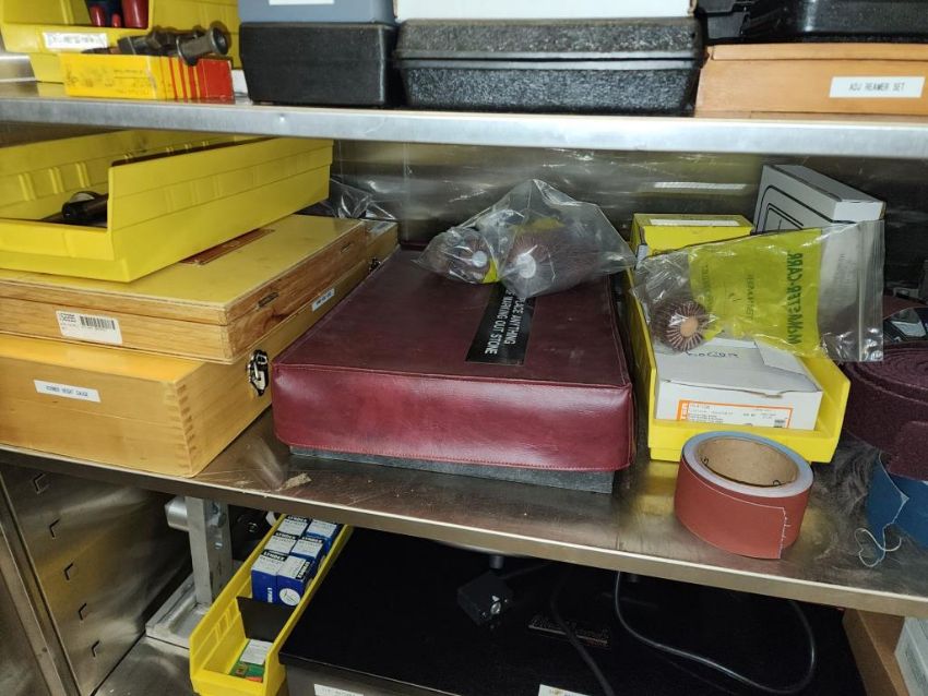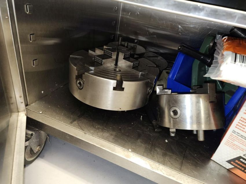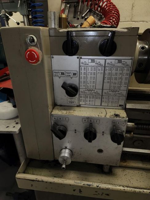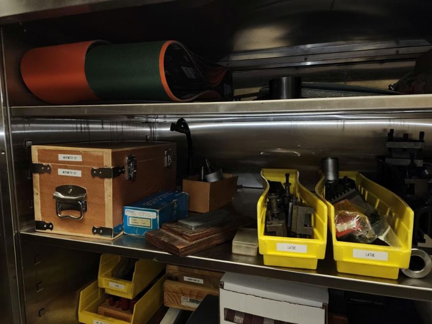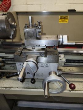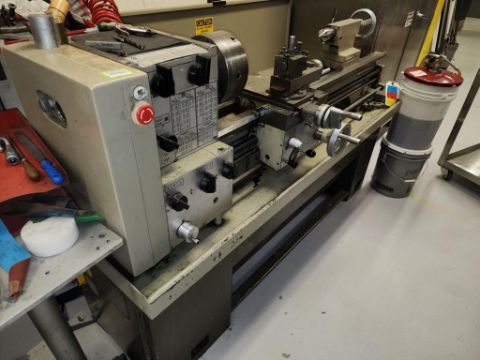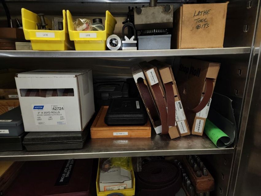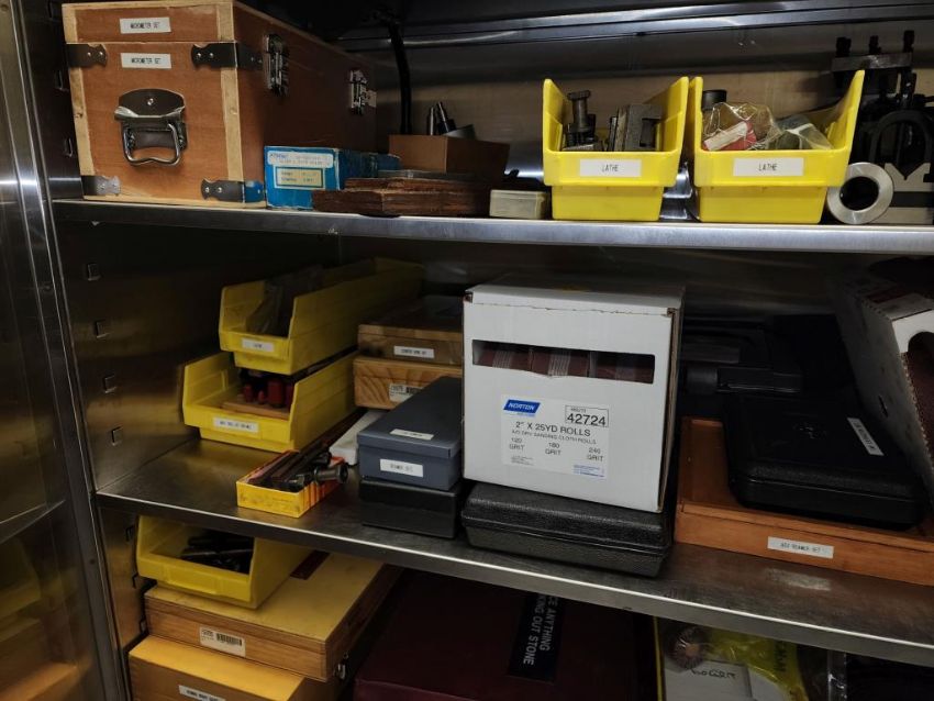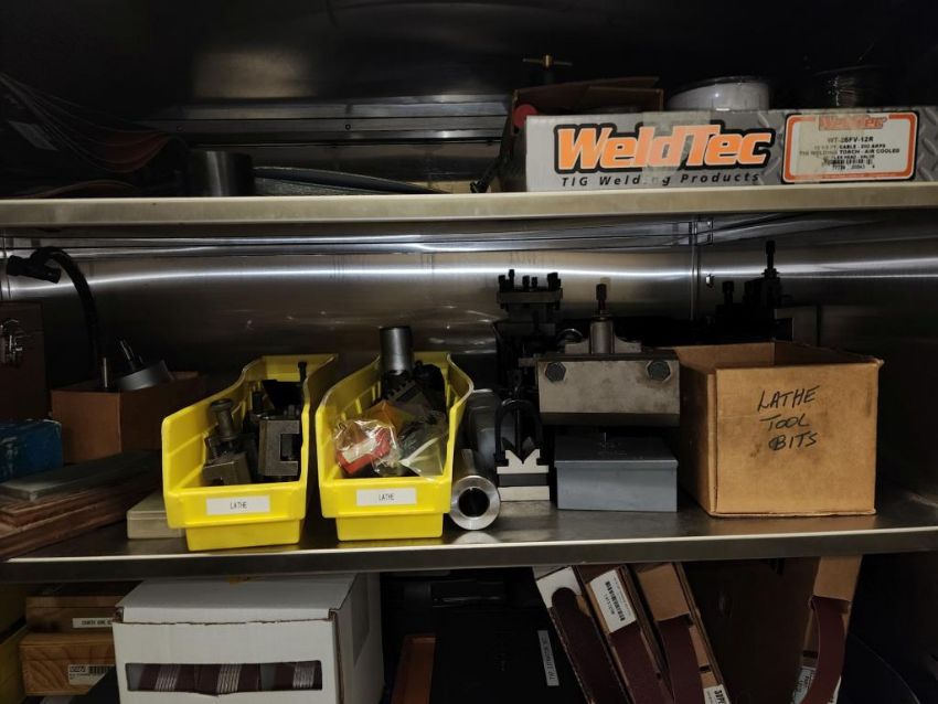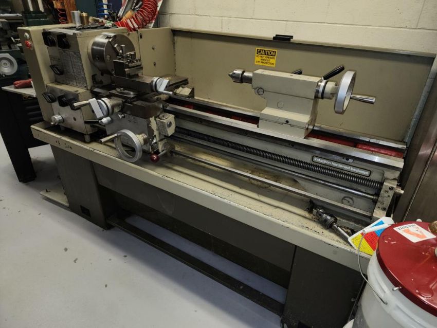 Harrison 600 Lathe 1/2" Spindle Bore 1x 3 Jaw chuck and 4 jaw chuck, tool post, induction hardened bed way, 21" swing over bed, 14" between centers, lot includes cabinet with assorted tooling and accessories. HIT# 2337673. Loc: 1314. Asset Located at 400 Iroquois Shore Road, Oakville, ON L6H 1M5, Canada.