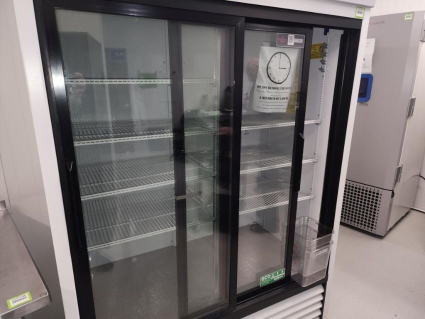 VWR HCLP-47-TS Refrigerator with 2 sliding glass doors and 7 wire shelves. SN# VWR-9665118-1904. HIT# 2337247. Large Lab. Asset Located at 16 Upton Road, Scarborough, ON, M1L 2B8 Canada. Payment in USD Only.