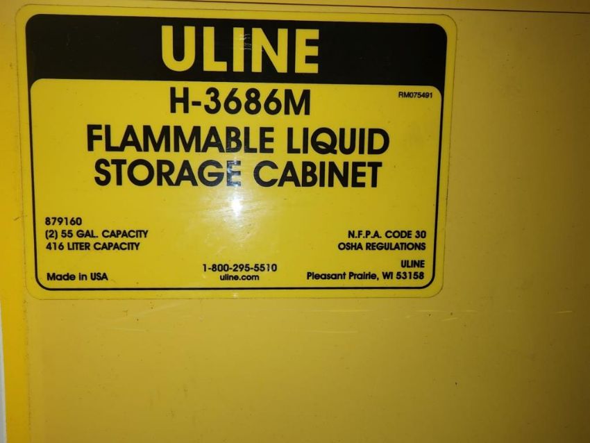 Uline H-3686M Flammable Storage Cabinet, 45 gallon, 1 small shelf. HIT# 2337298. Sally Port. Asset Located at 16 Upton Road, Scarborough, ON, M1L 2B8 Canada. Payment in USD Only.