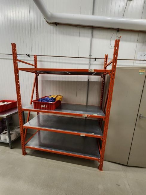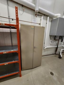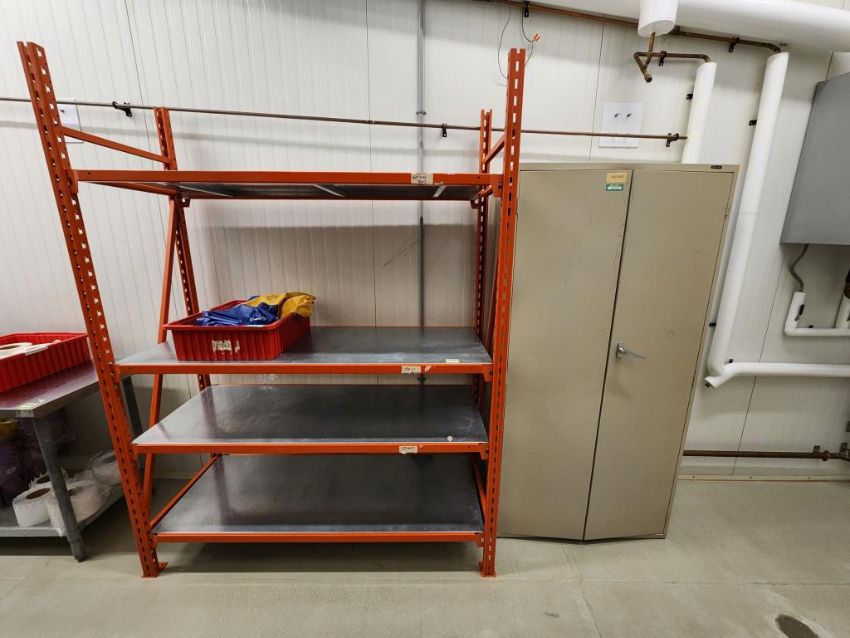 Metal Rack, 2 Door Stg Cabinet & 1 Box Assorted Bags-Sleeves. HIT# 2337459. Production corridor. Asset Located at 16 Upton Road, Scarborough, ON, M1L 2B8 Canada. Payment in USD Only.