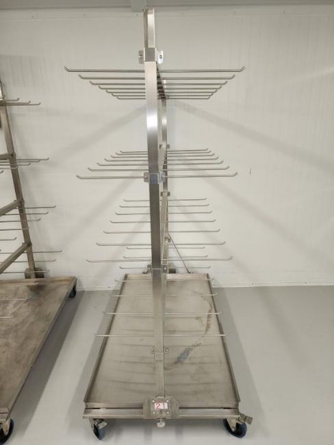 Wachsen Professional (5) Stainless Steel Wheeled Hang Dry Carts W/ BTM Drip Tray. HIT# 2337384. Trim Room. Asset Located at 16 Upton Road, Scarborough, ON, M1L 2B8 Canada. Payment in USD Only.
