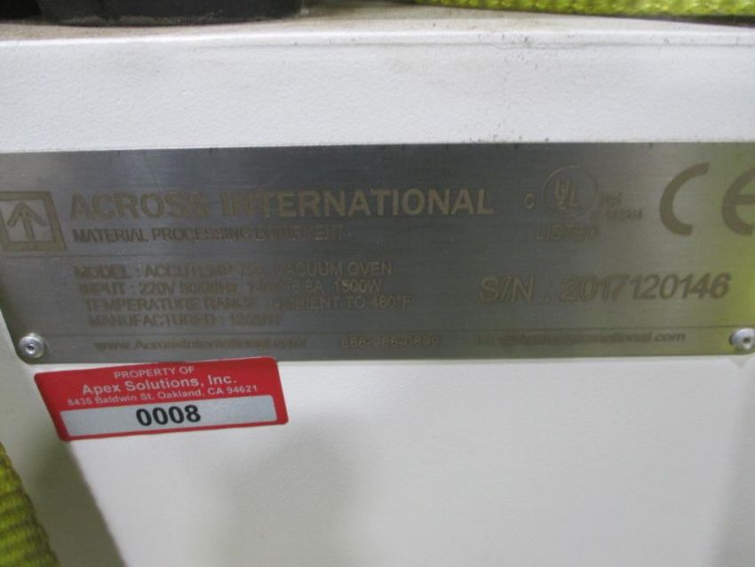 Across International Accutemp-75a Digital Vacuum Oven, Amb to 480F, 220V. S/N: 2017120146. S/N: 2017120146. HIT# 2329221. Loc: G17. Asset Located at 26545 Danti Court, Hayward, CA 94545.