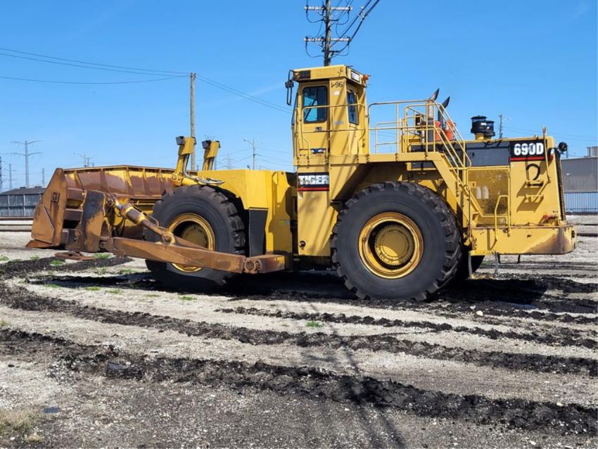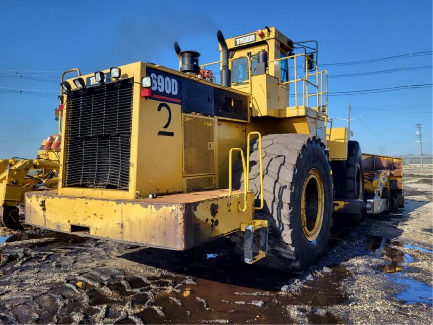 Caterpillar 992D 1993 Tiger 690D Wheel Dozer, Engine Model 3412 (mechanical), Mfg. Specs: Height Top of Cab 13.5 ft., Length With/Without Blade 25.5/17.5 ft., Fuel Capacity 293 gal, Operating Weight 144190 lbs, Number of Forward Gears 3, Reverse 3, Transmission Type Power Shift, Actual Specs May Vary, Operational, Hours Showing 39271. SN# 7MJ00509. Asset# 690-2. HIT# 2283073. Asset Located at 401 E Greenwood Avenue, Waukegan, IL 60087.