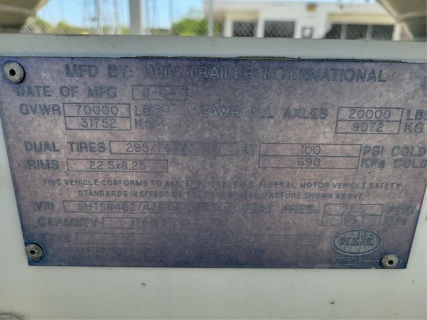 Heil 2000X4 2005 Dry Bulk Tank Semitrailer, 4-Hopper Zones, 1700 cu. ft. Capacity, Used For Transporting Trona, GVWR 70,000 LB. VIN: 5HTSN462457W10035. HIT# 2283090. Asset Located at 529E 135th St., Romeoville, IL 60446.