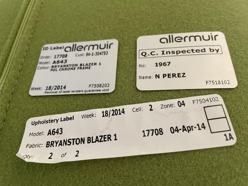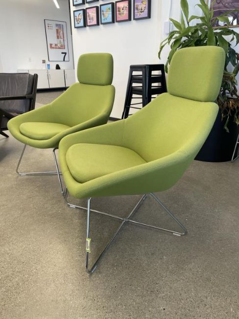 (2qty) Allermuir A643 Open Lounge Chair w/ Headrest (Lime Green). HIT# 2366595. Loc 7th Flr 7104. Asset Located In 1355 Market St. San Francisco, CA 94103.
