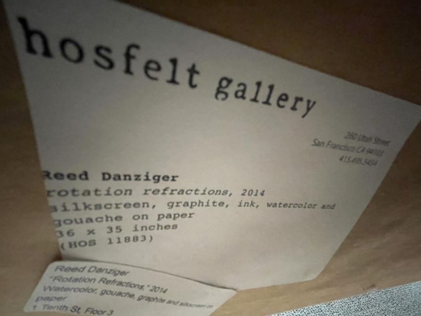 Reed Danziger "Rotation Refractions", 2014, Watercolor, gouache, graphite and silkscreen on paper. Dims with Frame = 37.5"W x 38.5"H. HIT# 2440871. Loc: 7th Flr 7257 . Asset Located In 1355 Market St. San Francisco, CA 94103.