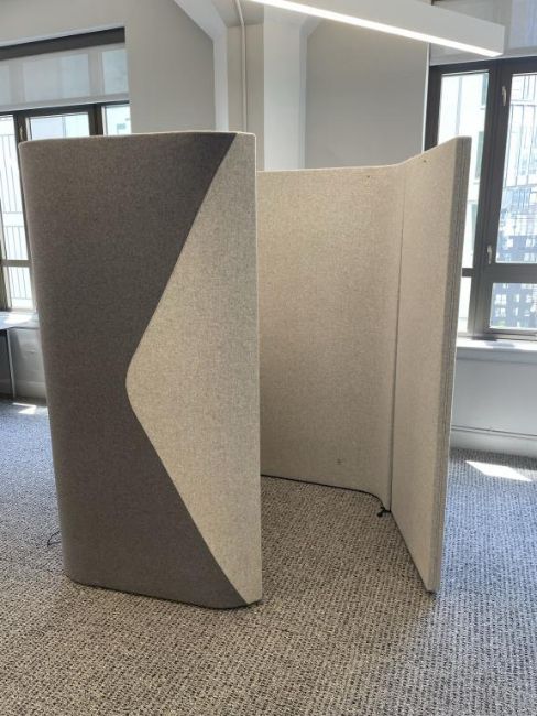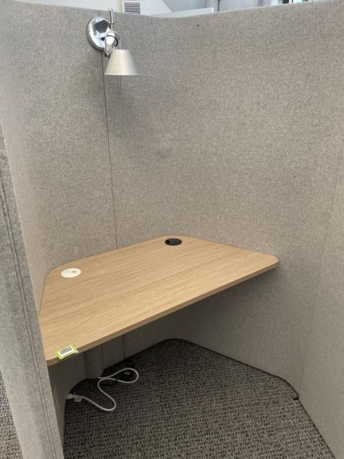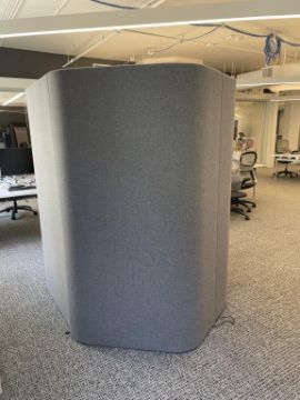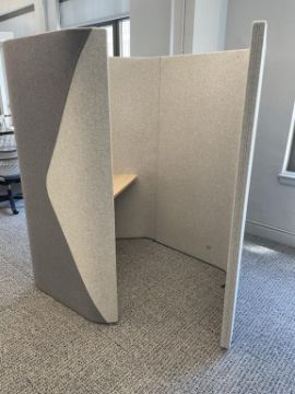 Senator Privacy Desk with Power, Grey. Dims = 64" x 52" x 70.75"H. HIT# 2366629. Loc 7th Flr 7131. Asset Located In 1355 Market St. San Francisco, CA 94103.