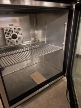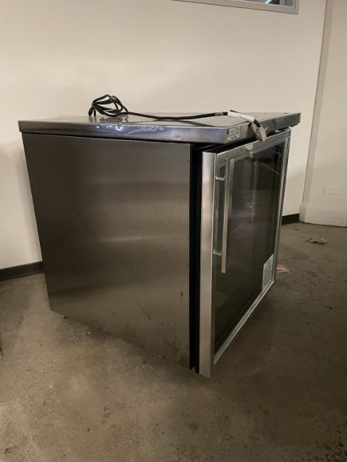 True TUC-27G-LP Stainless Steel Low Profile Undercounter Refrigerator with Glass Door, on Wheels. Overall Dims = 27.5"W x 30"D x 32"H. HIT# 2441109. Loc: 6th Flr. Asset Located In 1355 Market St. San Francisco, CA 94103.