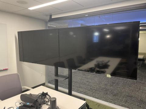 Video Conferencing System Complete with (2qty) NEC 657Q 65" Screens on a Single portable Stand ; (1) Logitech Rally V-R0010 Camera and V-U0048 Speaker; (1) Logitech TAP V-u0053 Controller; (1) Polycom RP Trio 8800 Phone; (1) Google Hangout Meet Speaker. HIT# 2441062. Loc: 5th Flr 5221. Asset Located In 1355 Market St. San Francisco, CA 94103.