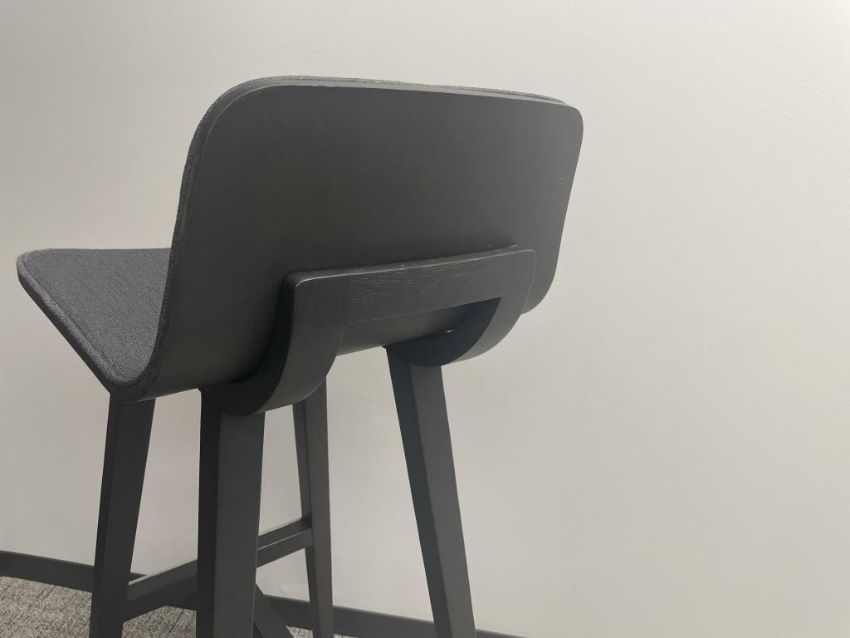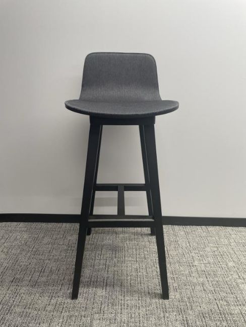(8qty) Alki Kuskoa Cushioned Bar Stools, Color Tourbe Oak, Designed By Jean Louis Iratzoki. Dims = 16.25"W x 18.5"D x 39.5"H / 31.5" HIT# 2366684. Loc 7th Flr 7221. Asset Located In 1355 Market St. San Francisco, CA 94103.