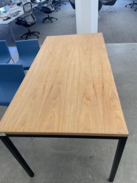 OHIO Design Rectangle Table, Solid Wood Top, Hand Welded Steel Frame. Dims = 72"L x 36"D x 36"H. HIT# 2366607. Loc 7th Flr 7104. Asset Located In 1355 Market St. San Francisco, CA 94103.