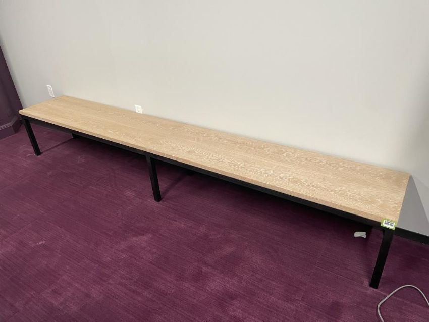 OHIO Design Bench, Solid Wood Top, Hand Welded Steel Frame. Dims = 120"L x 18"W x 17.75"H. HIT# 2366795. Loc: 7th Flr 7342. Asset Located In 1355 Market St. San Francisco, CA 94103.