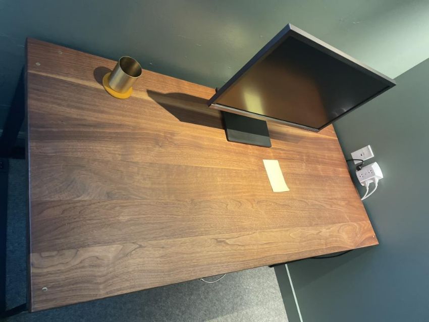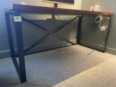 Ohio Design Desk, Dark Wood Top with Black Steel Frame. Dims = 65"L x 30"D x 30.25"H. HIT# 2366711. Loc: 7th Flr Library. Asset Located In 1355 Market St. San Francisco, CA 94103.