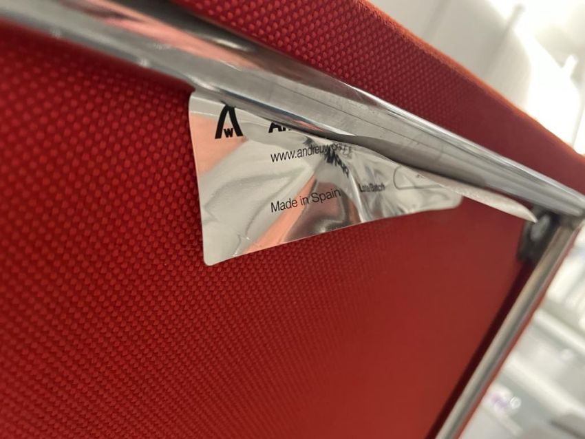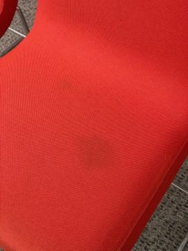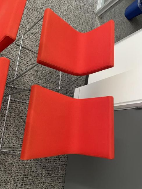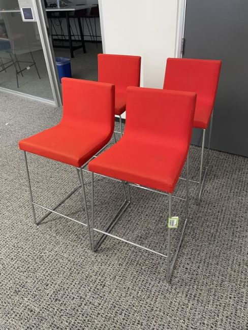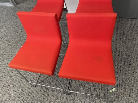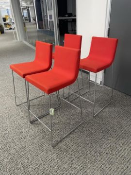 (4qty) Andreu World Lineal Comfort Counter Stools, Reddish Orange Fabric. Dims = 19.5"W x 20.25"D x 36"H / 25.5" S HIT# 2366656. Loc 7th Flr 7205. Asset Located In 1355 Market St. San Francisco, CA 94103.