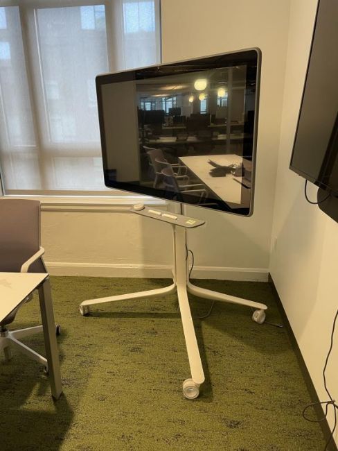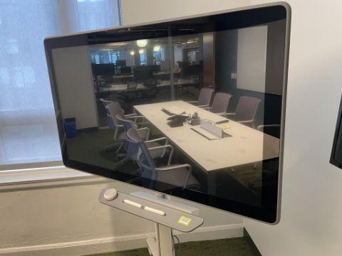 Google 55" Jamboard GA5A Digital Whiteboard Display, Black/Grey, (2) Pens and (1) Eraser with Rolling Stand - 4-Wheel Casters. Overall Dims = 53.25"W x 71"H x 29"D. HIT# 2441060. Loc: 5th Flr 5221. Asset Located In 1355 Market St. San Francisco, CA 94103.