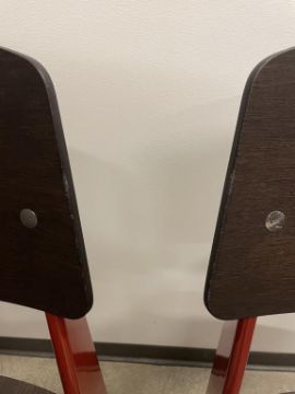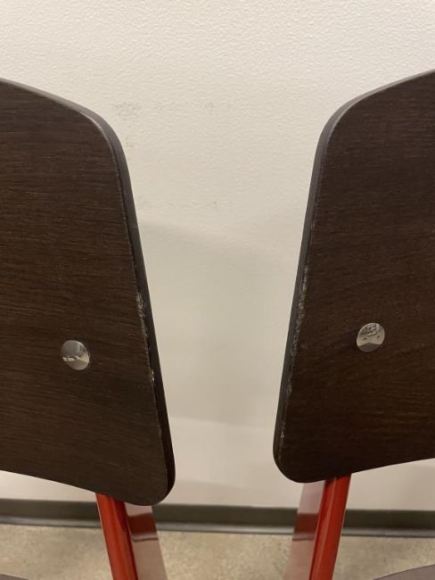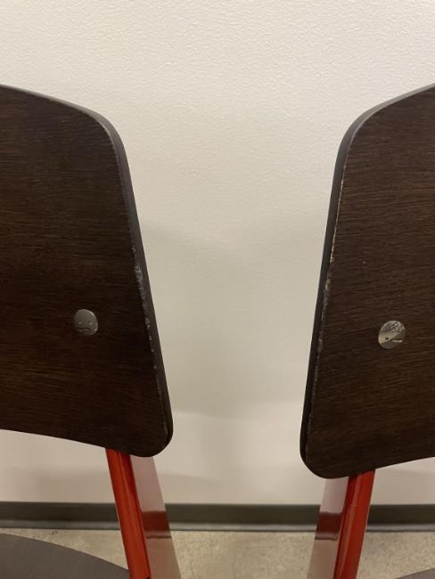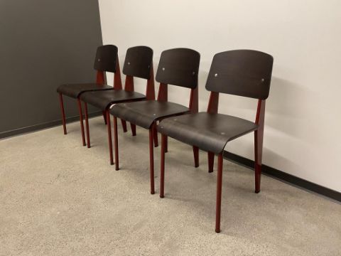 (4) Vitra Prouve Standard Chair, Dark Oak, Japanese Red. Overall Dims = 32"H x 16.5"W x 19.25"D. HIT# 2319751. Loc: 6th Flr Office. Asset Located In 1355 Market St. San Francisco, CA 94103.