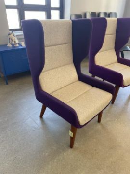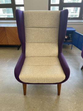 NaughtOne Hush Chair Wood Base, Two Tone (Purple/Grey). HIT# 2366589. Loc 7th Flr 7104. Asset Located In 1355 Market St. San Francisco, CA 94103.