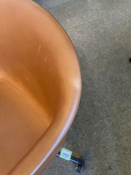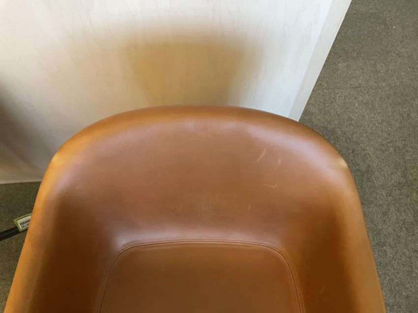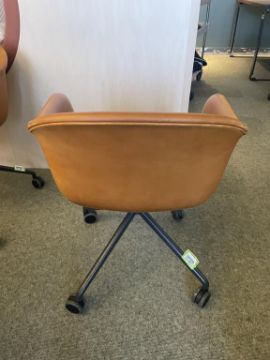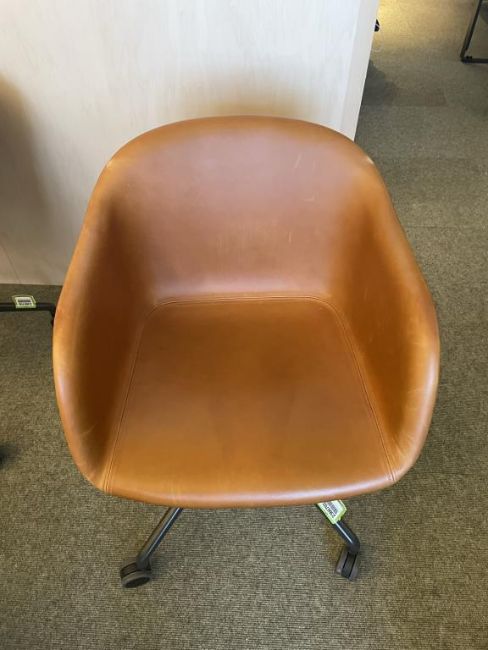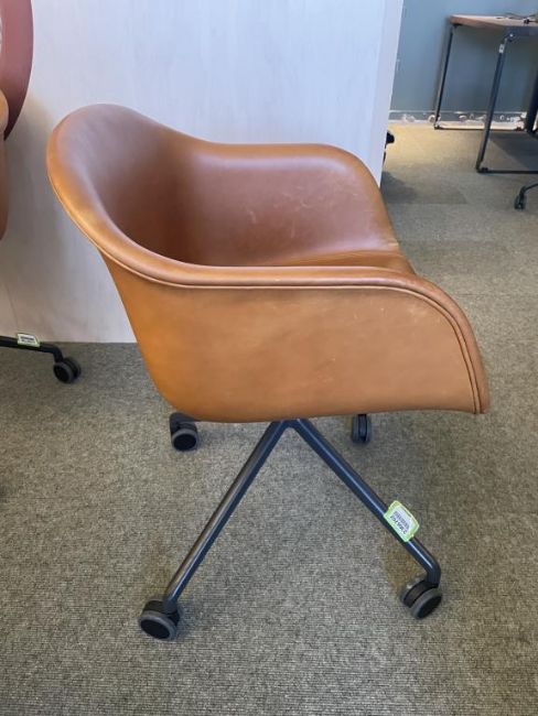 Muuto Fiber Swivel Chair, Casters, Cognac Leather. Dims = 21"W x 22"D x 30.5"H. HIT# 2366702. Loc: 7th Flr Library. Asset Located In 1355 Market St. San Francisco, CA 94103.