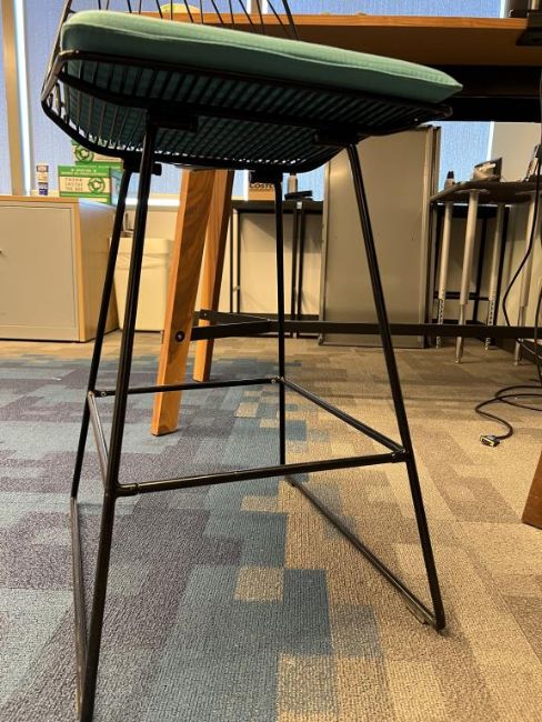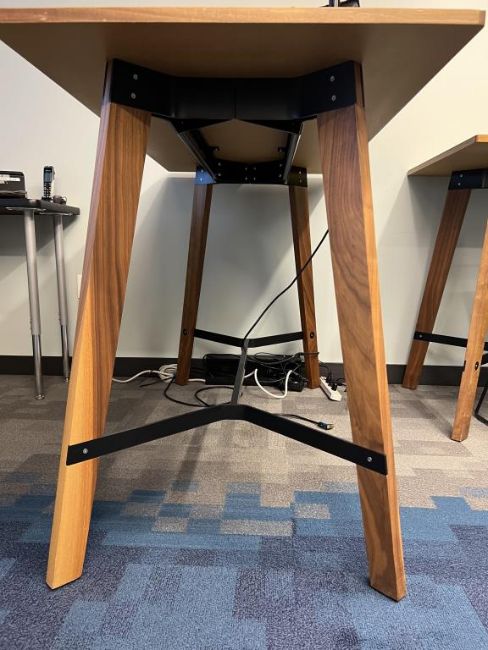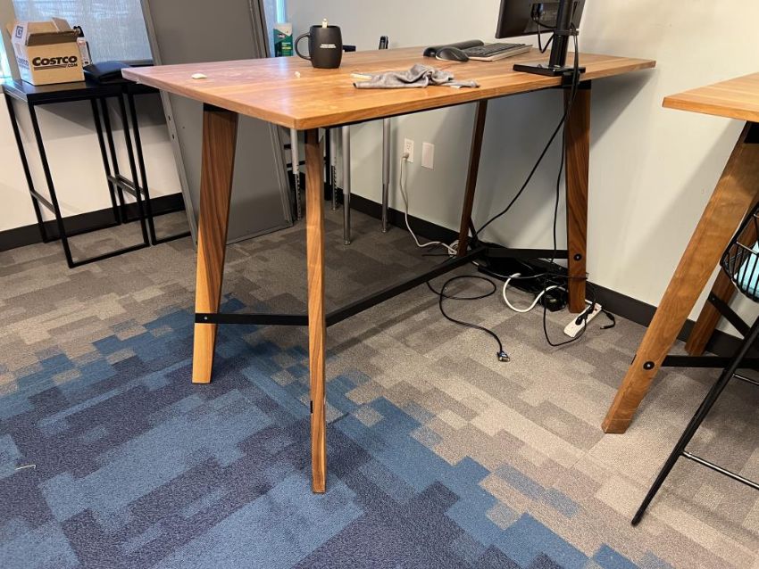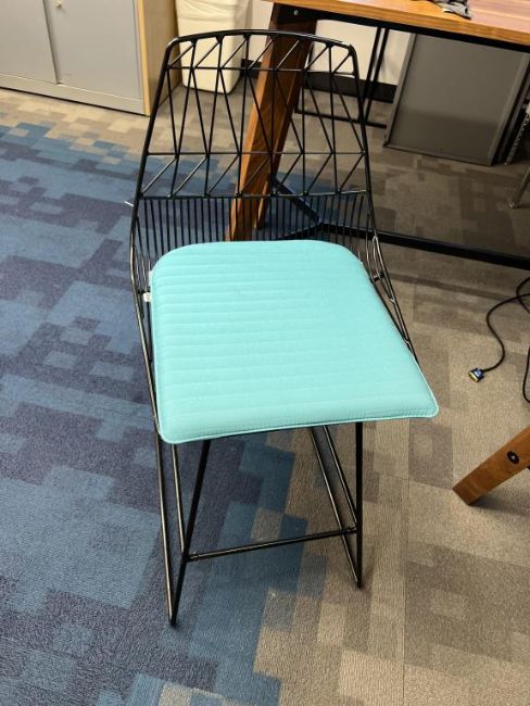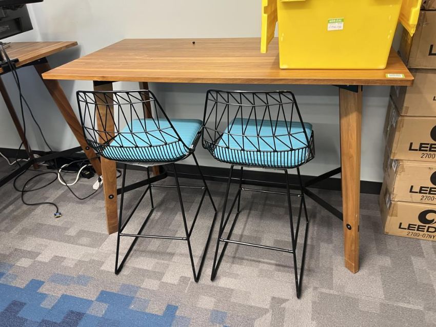 Collaboration Furniture consisting of (2) High Tables 60"Lt x 30"W x 40"Ht, Black Metal frame with (3) Bend Black Frame, Blue Cushions. Hit# 2392461. Loc: 10th Flr. Asset Located at 3979 Freedom Cir, Santa Clara, CA 95054.