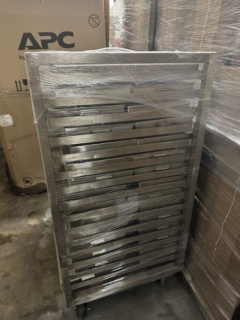 Rolling Stainless Steel Rack with Trays. HIT# 2447242. Loc: Back Warehouse. Asset Located at 225 Dixon Ave., Amityville, NY 11701.